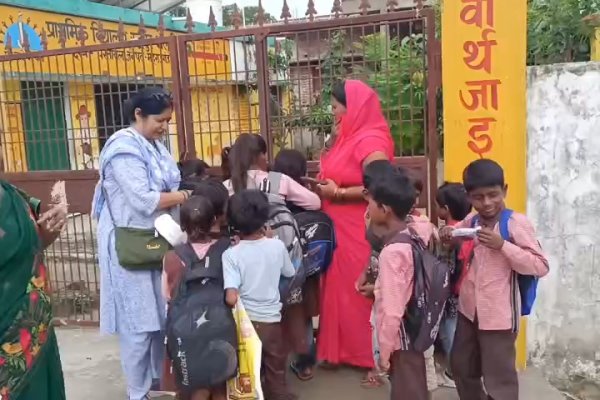 Maharajgnj News : विजन एकेडमी की नन्ही बालिकाओं ने अधिकारियों व पूर्व सैनिकों को बांधी राखी