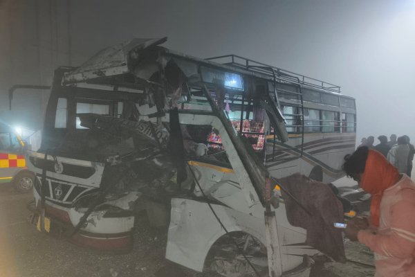 कुहासे और चालक की चूक से टला बड़ा हादसा, परतावल चौराहे पर बस–डीसीएम की जोरदार भिड़ंत